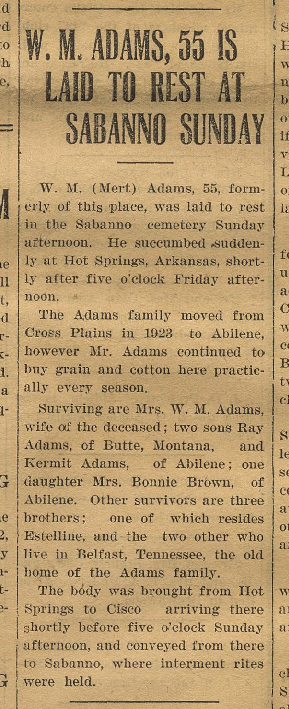 After visiting relatives at Big Spring that summer, Odom started teaching at Denton, just south of Clyde. The 1930 Census has her living in Callahan County, with her parents. The War Whoop gave its students an update on their popular alumnus in its May 16, 1930 edition: