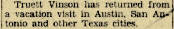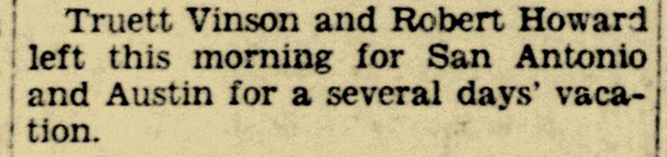 Following the collapse of The Junto and the death of his father, Truett Vinson picked up the pieces and got on with his life. The April 22, 1931 issue of Stamp-itis, a stamp collecting publication put out by the Texas Philatelic Association, notes his application for membership. The July 1st issue acknowledges his acceptance into the association. By the Christmas of 1933, things appear to have returned to normal, with Robert Howard telling August Derleth about his holiday: